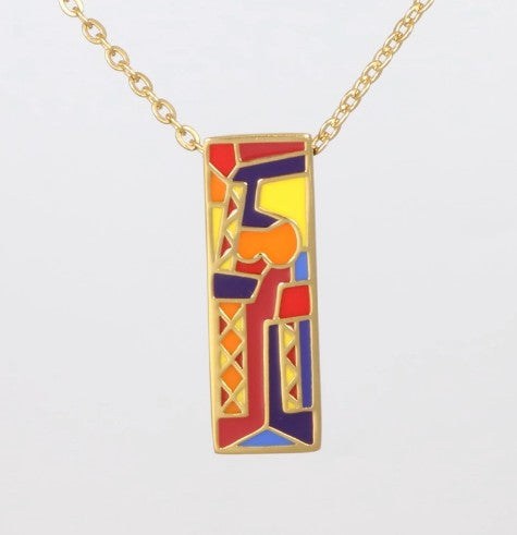 EsauritoGoldener Edelstahl Anhänger rechteckig mit farbiger Emaille in Rot Gelb Blau Orange inspiriert von Musik modern und künstlerisch