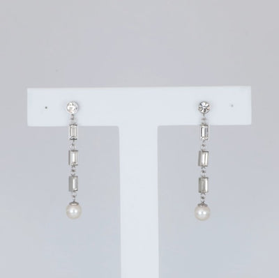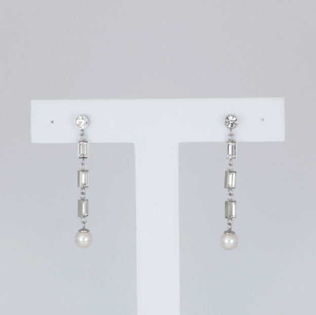 Die Lustre Hanging Pin Earrings vereinen funkelnde Eleganz mit modernem Design. Aus Edelstahl gefertigt und mit Swarovski® Kristallen verziert, bestechen die Ohrringe durch eine stilvolle Kombination rechteckiger Steine und einer eleganten Perle als Abschluss. Ein edles Schmuckstück, das jedem Outfit einen glamourösen Akzent verleiht.